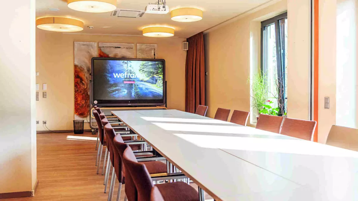 Man muss dem Leben immer mindestens um einen Whisky voraus sein – sagte einst Humphrey Bogart. Im ART-Hotel Braun in Kirchheimbolanden darf es gerne auch eine extravagante Gin-Variante sein – eine von vielen Cocktailspezialitäten, die es in der bei Gästen äußerst beliebten „the martin’s-Lounge“ gibt. Die Bar spielt eine zentrale Rolle im Hotel: als chic in Rost- und Cognactönen gestylte Hotellounge mit offenem Feuer für gesellige Abende, als Meeting Point für Tagungspausen und Gruppenarbeiten oder sogar als Seminarraum, von manchen Trainern gewünscht wegen des coolen und entspannten Ambientes. Solchen und anderen Sonderwünschen kommt die Inhaberfamilie Braun gerne nach, schließlich ist es die persönliche und individuelle Betreuung, die Gäste seit 40 Jahren an das 4-Sterne-Haus mitten im Ort bindet. Seit einigen Jahren ist der technikaffine Junior-Chef Martin Braun mit im Boot. Er hat das Business-Hotel nicht nur weitgehend digitalisiert, sondern auch neugestaltet und eine moderne Farbgebung in Erde, Olive und Terrakotta hineingebracht. Zusätzlich setzt er starke künstlerische Akzente. An der Fassade des Hotels prangt die größte Spraybanane der Welt des Künstlers Thomas Baumgärtel. In den Innenräumen des Hotels finden wechselnde Ausstellungen zeitgenössischer Künstler statt, die immer wieder Gesprächsthema in der kleinen Stadt sind oder inspirierende Ideengeber für die Tagungsgäste. Auch die Zimmer – alle modern gestaltet, klimatisiert und mit Kaffee-Tee-Station versehen – fallen durch einen witzigen künstlerischen Touch und fröhliche Farben auf. Da wird das Tagen fast zur Nebensache, obwohl auch hier die Bedingungen bestens sind: Der große Tagungsraum ist klimatisiert, mit warmen Farben stilvoll gestaltet und hat bodentiefe Fenster. Er kann um einen weiteren Raum erweitert werden für größere Veranstaltungen oder Vorträge. Die cannyboards, mit denen die Teilnehmer ihr Meeting interaktiv gestalten und Teilnehmer an anderen Standorten problemlos zuschalten können, sind in der Tagungspauschale inkludiert. Am Abend können Seminargäste einen kulinarischen Streifzug durch das historische Städtchen unternehmen oder Ausflüge zu einem der vielen nahegelegenen Weingüter in der Pfalz machen, bevor sie ihren Absacker in der Cocktail-Lounge genießen.