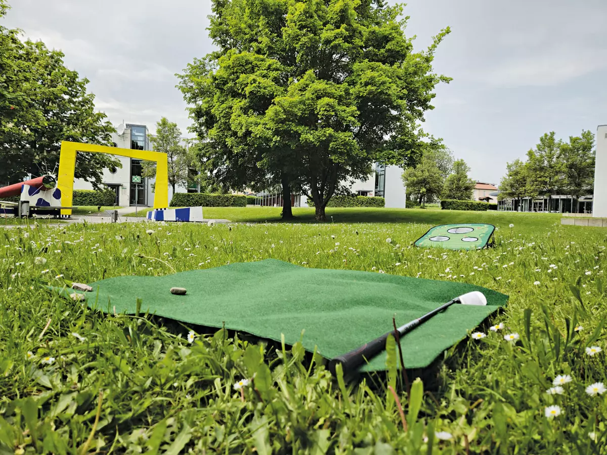 Stärken Sie die Dynamik Ihres Teams auf eine innovative und spielerische Art.„Campusgolf“ regt das kreative Denken an und ist eine ideale Ergänzung zu den inhaltlichen Schwerpunkten Ihrer Tagung. Der Parcours wird individuell aufgebaut und so kann man in- oder outdoor die Treffsicherheit unter Beweis stellen. Über Treppen und Rampen, in den Fahrstuhl, zwischen Tagungstischen oder auf der Wiese im Innenhof – Ball und Gedanken haben Freiraum.