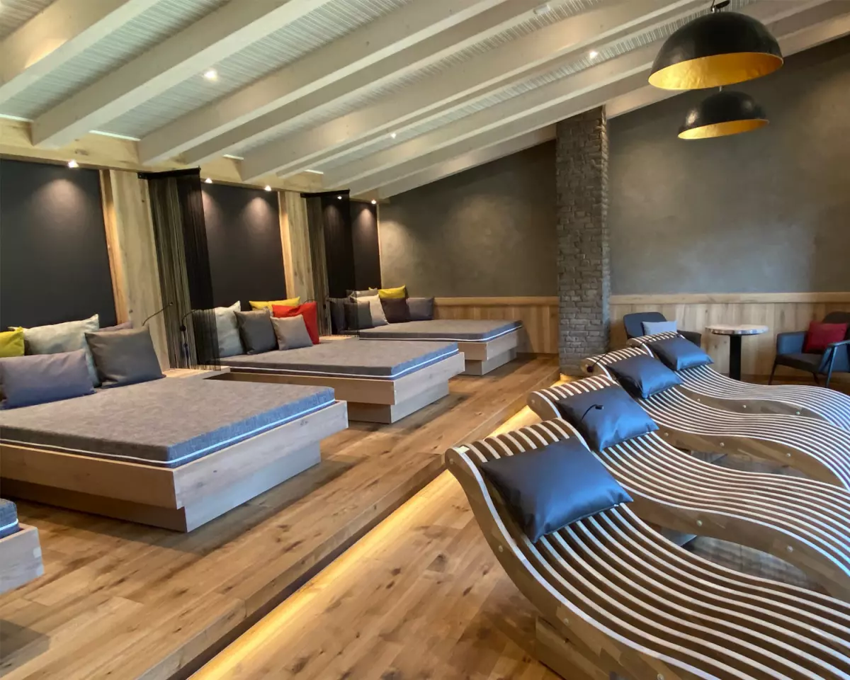 Das neue Wellnessgebäude ElsavaSpa wartet auf den Gast mit einer großartigen Ausstattung, wie Panorama-Sauna, Relaxbereichen mit großen Betten und Entspannungsliegen, sowie einer Kamin-Lounge.