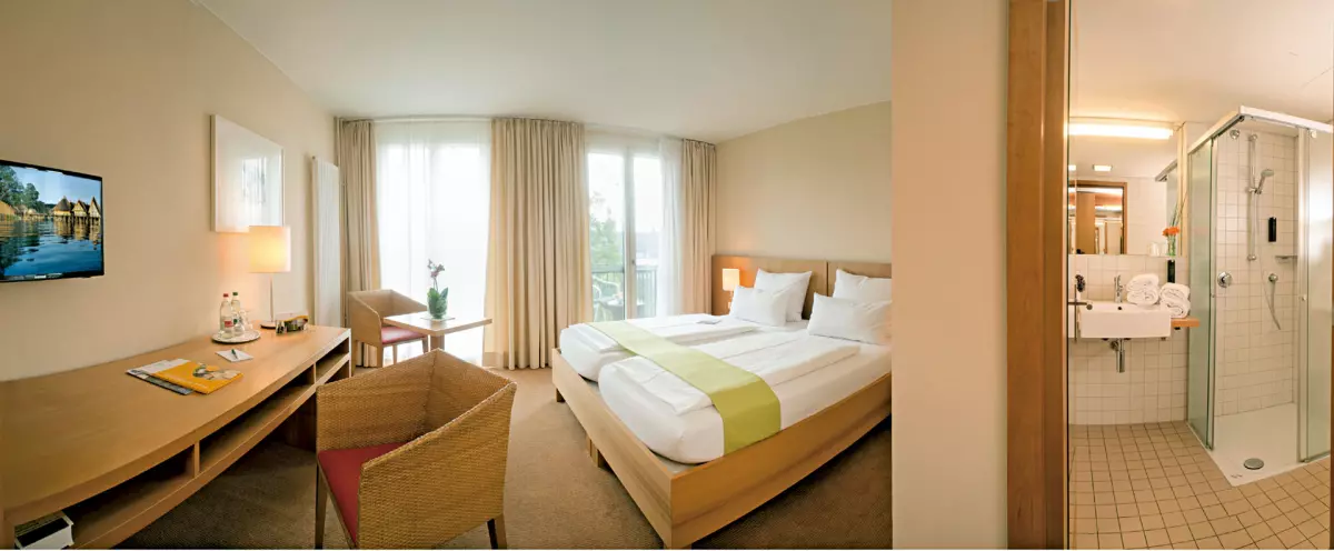 Welche Rolle spielt Kirche, spielen kirchliche Institutionen und Angebote in heutiger Zeit – für die Gesellschaft im Ganzen, aber auch für Unternehmen im Besonderen? Tagungshotels in kirchlicher Trägerschaft werden jedenfalls nicht weniger, sondern immer stärker frequentiert. Denn in einer Zeit multipler Krisen suchen auch Firmen Rückzugsorte, an denen Mitarbeiter wie Manager Abstand gewinnen, zur Ruhe kommen und sich Fragen widmen können, aus deren Beantwortung ein festes Fundament für persönliche wie auch unternehmerische Weiterentwicklung entstehen kann. Das Hotel St. Elisabeth ist ein solcher Ort. Hier, in direkter Nähe zum Kloster Hegne, treffen Businessgäste nicht nur auf ein historisch-sinnerfülltes Umfeld, sondern sie finden sich auch in einer einzigartigen Natur-Lage am Bodensee wieder, die es ihnen genauso wie das für kirchliche Häuser typische weitläufige Areal und das großzügige Raumangebot möglich macht, sich im wahrsten Sinne des Wortes frei zu entfalten. Großzügigkeit findet man wirklich allerorten: in den technisch hochwertig ausgestatteten Tagungsräumen, den Ausstellungsbereichen, auch im Garten, wo man sich im Schatten der Bäume besprechen kann. Großzügig auch der Umgang mit Kundenwünschen, die vom aufmerksamen Hotelteam mit Hingabe erfüllt werden. Überhaupt ist die herzliche, menschliche Art, sich zu begegnen, etwas Besonderes und erzeugt eine vertrauensvolle Atmosphäre, in der man sich als Individuum wahrgenommen und wohl fühlt. Das Haus zeigt sich weltoffen und lebendig, empfängt auch Individualreisende. Dass sich deshalb die Küche gewandelt hat und mittlerweile zeitgemäßen Anforderungen entspricht, davon profitieren auch Tagungsgäste. Gemeinsam zu Abend essen kann man übrigens nicht nur im schlicht, aber schön eingerichteten Restaurant, sondern auch am privaten Seegrundstück, wo der Szenerie um den Untersee, die Alpen und die Insel Reichenau vor allem bei Sonnenuntergang etwas Magisches anhaftet: Großzügig hat der Herrgott diesen Landstrich mit Schönheit gesegnet, weshalb Tagungsgäste den Aufenthalt garantiert nicht vergessen werden – genauso wenig wie die Großzügigkeit, die sie allerorten erfahren durften.