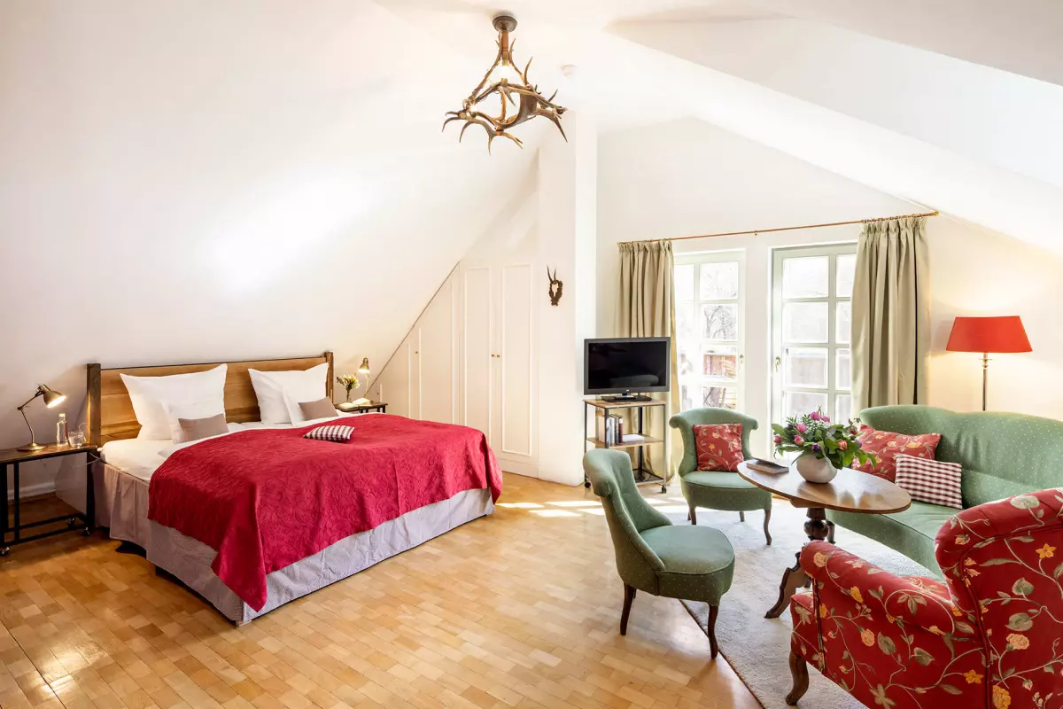 Wer ihn einmal gespürt hat, möchte ihn gern wieder erleben: den Bärenmühlen-Effekt. Man kommt an und ist sogleich in einer anderen Welt, in einer ruhigen, entspannenden Welt. Die Stille der unberührten Natur in Einheit mit der stimmigen Atmosphäre im geschmackvoll restaurierten Fachwerk-Ensemble der historischen Mühlen- Häuschen um den feldsteingepflasterten Innenhof wirken wie ein umgelegter Schalter: Aus Anspannung wird innere Ruhe, aus hektischem „Ich muss“ wird ein kreatives „Ich kann“. Vier Hektar eigenes Land im schönen Lengeltal gehören zum Hotel. Naturerlebnisse und Outdoortrainings lassen sich hier wunderbar in die Tagung einbinden, und das direkt vor Ort. Wenige Schritte den Hügel hinauf befinden sich verschiedene Niedrigseil- Elemente in den Bäumen, entspannenden Talblick inklusive. Es gibt die kleine Holzhütte am Waldrand als Unterschlupf für Pausen, den Lengelbach, der in Teams überwunden werden will oder der einfach das Naturpanorama vervollkommnet. Für „Listening-Nature“-Seminare oder Achtsamkeitstrainings, bei denen Teilnehmer den Signalen des Waldes nachspüren, ist dieser kraftvolle Ort ein Genuss. In der Bärenmühle gibt es zudem einen nagelneuen, modernen Tagungsraum. „Sala Goethe-Tischbein“ ist 125 m² groß, in zwei Sektionen teilbar und verfügt über einen eigenen Eingang, separate Terrasse und bestes Equipment – inklusive interaktiven 86-Zoll-Smartboards. Aus bodentiefen Fenstern geht der Blick in den malerischen Innenhof, der bei gutem Wetter zum lauschigen Biergarten wird. Auf Wunsch haben Gästegruppen das gesamte Anwesen für sich allein. Sie wohnen in einem der individuell und stilvoll eingerichteten Landhauszimmer – einige mit Dachterrasse – und entspannen sich nach getaner Arbeit entweder im Wald, im Saunahäuschen mit Schwimmteich, im Garten der Bärenmühle oder mit einem guten Wein und guten Gesprächen am offenen Kamin. Die gehobene frische Küche des Hauses wird sehr gelobt. Sie interpretiert regionale Spezialitäten mit französischem Esprit, was auch mit der Geschichte des Hauses zu tun hat. Die Zutaten stammen dabei größtenteils aus der heimischen Landwirtschaft. Gut, man fährt schon ein Stückchen bis zur nächsten Autobahn hier im Naturpark Kellerwald Edersee, aber jeder Meter lohnt sich. Es gibt kaum schönere und inspirierendere Orte als diesen.