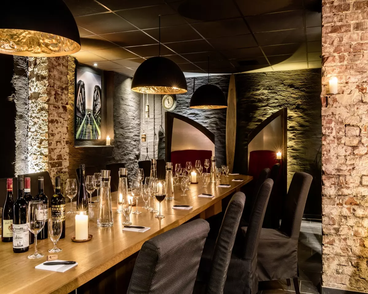 Dieser Raum eignet sich hervorragend für kleine private Veranstaltung. Hier reicht das Angebot von verschiedenen Selbstbedienungslösung (wie z.B. für das Private Viewing bei Fußball-Spielen) bis zu hochwertigen Dinner-Veranstaltungen. Im Raum vorhanden sind zusätzlich ein großer LCD-TV und ein großer Kühlschrank. Direkt angrenzend an diesen Raum befindet sich unser heißbegehrter Weinkeller.