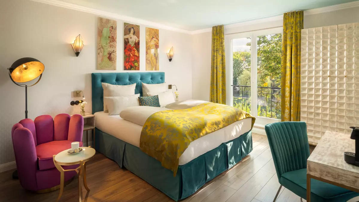 Wollte man einen typischen Ort des Parkhotels Landau wählen, es wäre wohl der Tagungsraum Banksys Atelier mit seinen roten (und unglaublich bequemen!) Ledersesseln samt Street Art und Selfie-Spot. Oder doch eher einer der anderen kreativen Räume wie Steve’s Garage, eine Hommage an Steve Jobs im Industrial Style, oder der grüne, mit Hängepflanzen dekorierte Raum HinGaabe? So unterschiedlich und außergewöhnlich sie sind, eines haben sie gemein: Sie sollen die Teilnehmer von Seminaren und Tagungen dazu verleiten, ein wenig „Out-of-the-Box-Denken“ zu proben. Auch in den konventionelleren Räumen finden die Seminarleiter daher mit der Activity Box die Ausstattung, die man braucht, um auch mal ein wenig Fantasie aus den Teilnehmern zu kitzeln, modernste Technik inklusive: Beschreibbare Wände beispielsweise, digitale Flipcharts sowie ein Multifunktionsboard, das für hybride Veranstaltungen genutzt werden kann – und all das komplett barrierefrei! Sogar für die Pause gibt es ausgefallene Möglichkeiten, denn das Parkhotel liegt (nomen est omen) an einem Teich samt Grünflächen und hölzernen Installationen, auf denen sich auch (oder gerade!) Erwachsene vergnügen dürfen. Mit dem Bollerwagen voller Snacks und Kaffee bekommt man so auch müde Geister wieder fit. Alle Zimmer sind individuell eingerichtet – und der Gast wird immer wieder daran erinnert, dass er oder sie sich in der Pfalz befindet: Durch die Deko, aber auch im Restaurant Brasserie Wein & Dein, wo rund 50 lokale Weine auf der Karte stehen. Doch nicht nur Genuss ist hier wichtig, sondern auch Nachhaltigkeit: Das Frühstücksbuffet und die Kaffeepausen kommen komplett ohne Verpackungen aus, passend dazu sind im Hotel alle Vorgänge konsequent digitalisiert. Nicht zuletzt ist das Parkhotel aber auch entspannend: Selbst wenn man sich hier bewusst nicht als Wellness-Hotel bezeichnet, können sich der 18 Meter lange Pool und die Saunen samt Massage-Angebot sehen lassen.