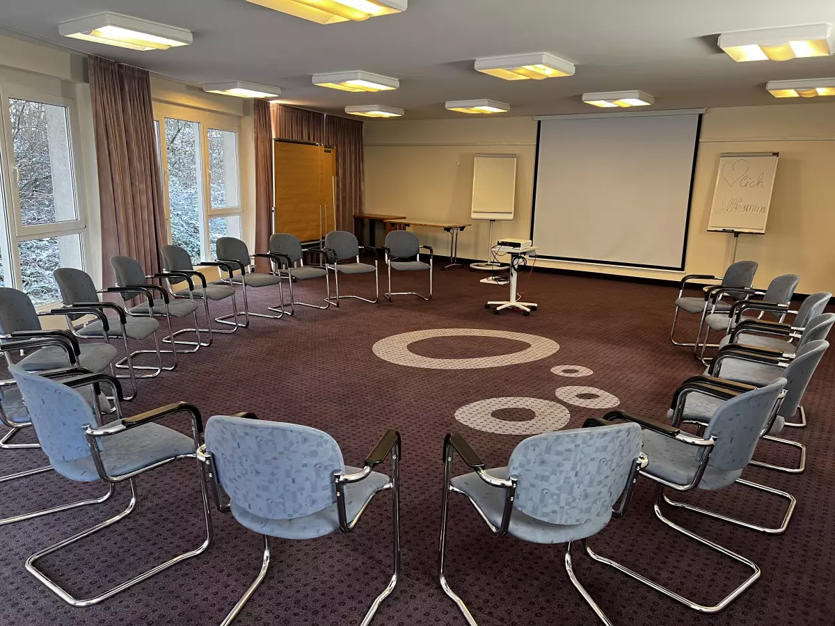 Tagungstechnik - für Ihre Veranstaltung im Haus verfügbare Tagungstechnik (Mietpreis pro Stück / Tag) Videokonferenzsystem Logitech GROUP 145,00 €, Laptop Lautsprecher 10,00 €, PC Fernbedienung 5,00 €, Pinnwand 25,00 €, Flipchart 25,00 €, Whiteboard 25,00 €, Beamer 60,00 €, Moderatorenkoffer 30,00 €, Video Kamera 50,00 €, TV(40“)-BluRay Player-Kombi 30,00 €, DVD Player 20,00 €, Stativ 10,00 €, Rednerpult 20,00 €, Kabelmikrofon mit Aktivbox 50,00 €, Head-Set Mikrofon* 20,00 €, Funkmikrofon (1 Handmikrofon)* 50,00 €, Funkmikrofon (2 Handmikrofon)* 80,00 €, *Audioanlage für Funkmikrofone 150,00 €, Weitere Technik auf Anfrage zu den jeweiligen Konditionen der externen Dienstleister.