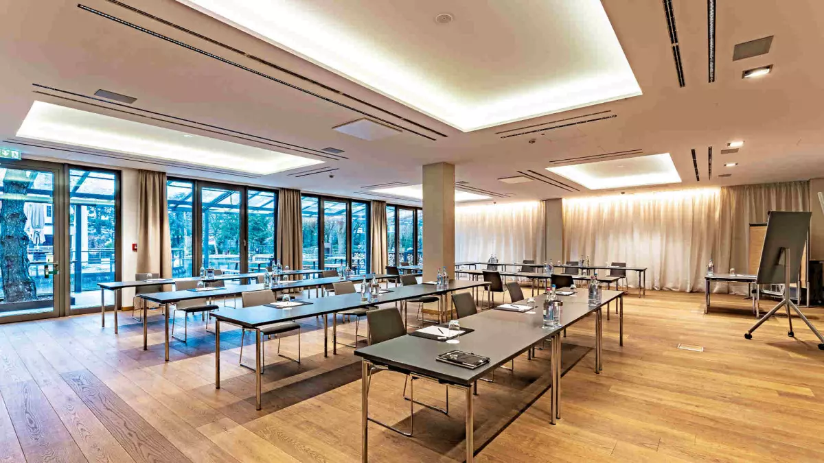 Familie Welling betreibt mit dem Parkhotel in Kamp- Lintfort und dem Romantik Hotel zur Linde im benachbarten Moers zwei der schönsten Hotels am Niederrhein. Ob Gästezimmer, Tagungsräume, Gastronomie oder Wellness: Das ganze Parkhotel durchströmt eine traumhafte Aufenthaltsqualität, gepaart mit ganzheitlich durchdachtem Service-Versprechen. Beim allseits hohen Logiskomfort in geräumigen Zimmern mit hochwertigen, teils überlangen Betten gibt es mit Jung, Modern und Farbenfroh sowie Cool und Edel drei Stilrichtungen zur Wahl. Sie verteilen sich, ebenso wie die verschiedenen Tagungsbereiche, auf drei winklig aneinandergebaute Gebäudeteile: das „Haus der Alleen“, das „Gartenhaus“ und das „Haus der Ideen“. In ihrer Mitte liegt der wunderschöne Park mit malerischem See, kleinem Wasserfall, lauschigen Eckchen, traumhaften, teils überdachten Seminar- und Restaurant-Terrassen, inklusive Outdoor- Grill und Außenbar sowie einer Lounge auf der Seeinsel. Jeder findet hier wie auch im schicken Restaurant seinen Lieblingsplatz. Tatsächlich haben die meisten Tagungsräume eigene Terrassen, die eher verspielten Räume der Lern- und Erlebniswelt bieten im Garten der Sinne auch geschützte Outdoor- Tagungsplätze. Die Räume der „DenkWerkstatt“ im Haus der Ideen bringen mit minimalistischer Ästhetik aus betont dezenter Farbgebung und einer geradlinigen Designsprache die Kreativität der hier Tagenden zur Entfaltung. Im direkt angrenzenden „Essquartier“ und in der „Genusswerkstatt“ unterstützt das eigens hierfür entwickelte Gastronomiekonzept des dynamischen Mittagessens die Bedürfnisse der Tagungsgäste nach mehr Flexibilität. Die stets frische Küche des Parkhotels wird allseits sehr geschätzt. Ein wunderschöner Spa-Bereich mit 12,5-m-Pool und Saunen oder der Fitnessraum mit Seeblick geben denjenigen Ruhe und Muße, die neben dem Besuch der „Wirtschaft“ noch Zeit übrig haben. Denn die „Wirtschaft“ ist der erklärte Lieblingsplatz des ganzen Hauses: Ein urgemütliches Ambiente, eine beachtliche Getränkeauswahl mit 30 Biersorten, darunter neun vom Fass. Wellings Parkhotel ist ein Genuss auf der ganzen Linie.