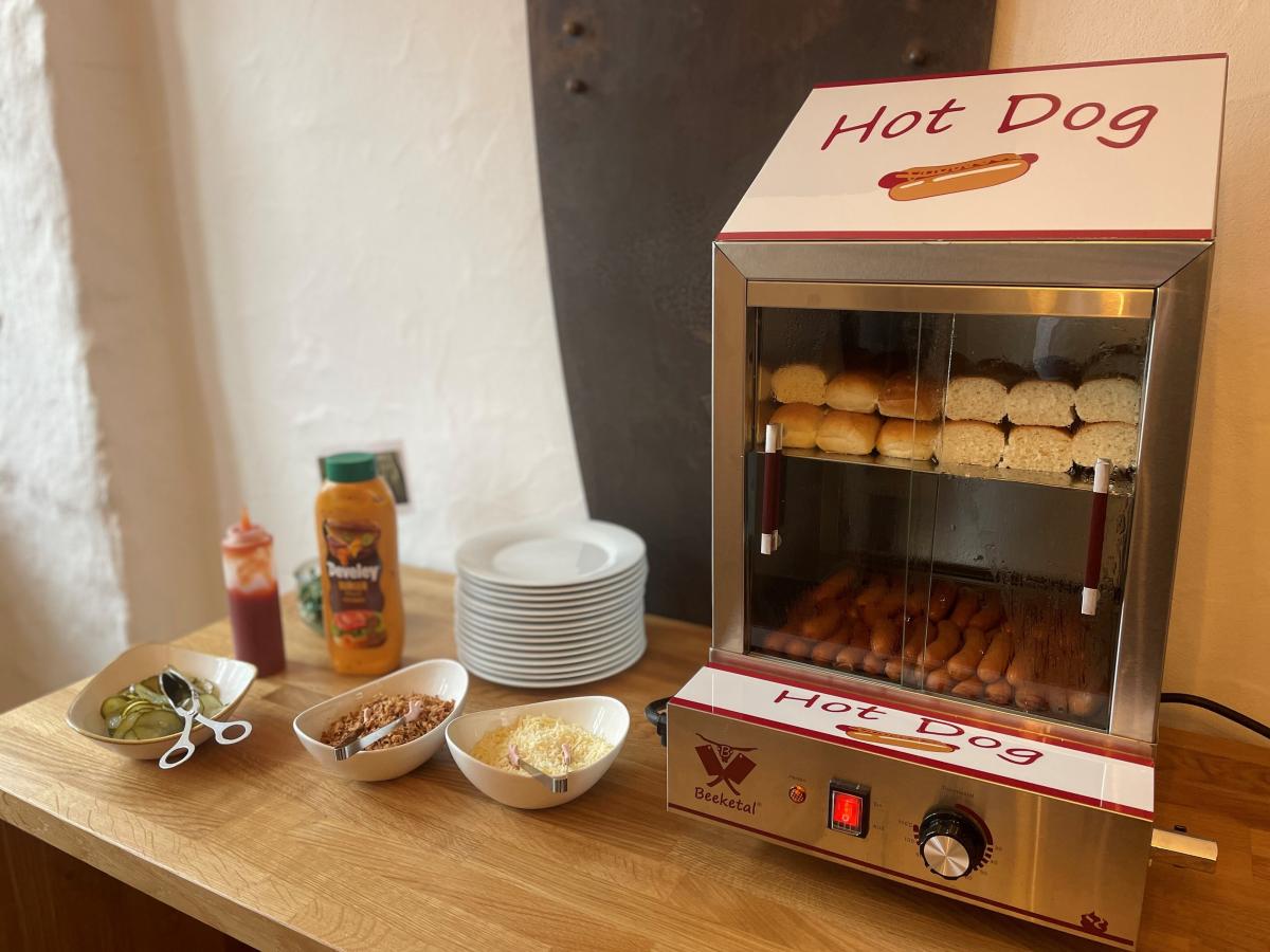 Kaffeepause mit Hot Dogs und Mettbrötchen
