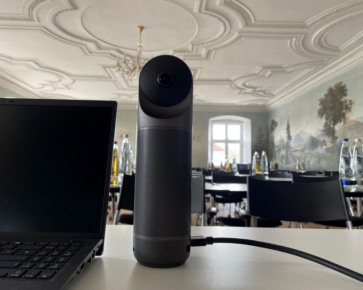 Seit kurzem können auch hybride Tagungsformen in Kloster Holzen durchgeführt werden – ohne komplizierte, störanfällige Technik, sondern mit nur einem kleinen, genialen Gerät: die Kandao Meeting Pro 360° Kamera ermöglicht Tagungsgruppen, ihr Meeting ganz spontan, schnell und einfach in eine professionelle Videokonferenz zu verwandeln.