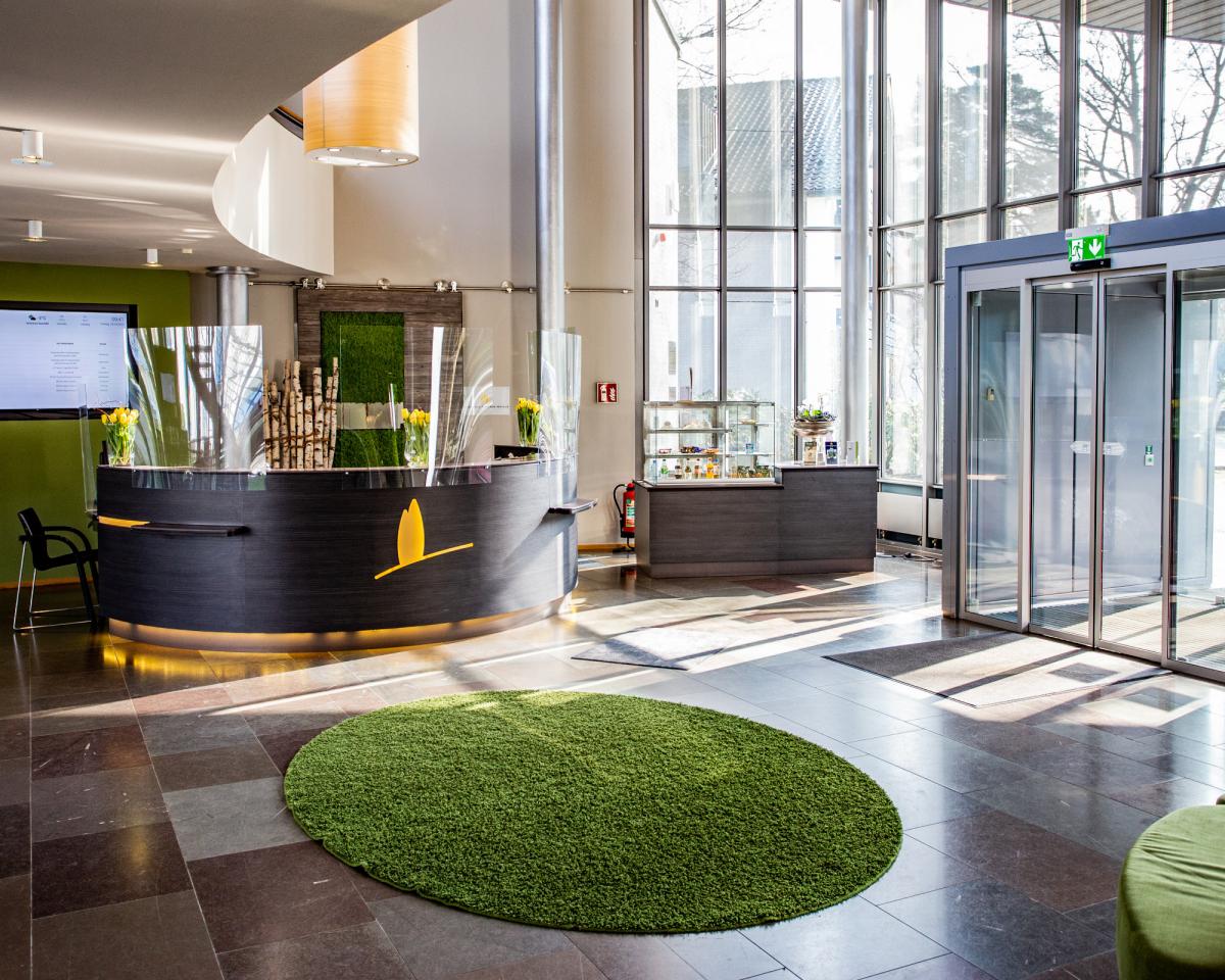 Lüneburger Heide. Schon bei der Anreise spüren unsere Hotel- und Tagungsgäste im großzügig gestalten Foyer das moderne, einladende Ambiente des Hotelkomplexes.