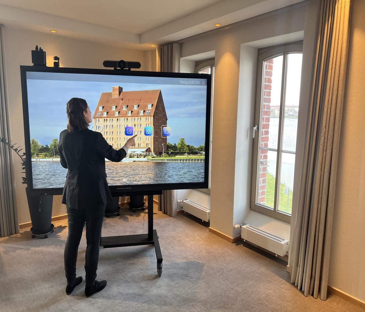 Mit unserem Galneoscreen können Sie ganz einfach und professionell hybride Tagungen durchführen. Der 86 Zoll Bildschirm besitzt mehrere Kameras sowie Mikros und Lautsprecher. Einloggen und los geht es! Sie können das Gerät kostenfrei dazu buchen. Außerdem renovieren wir gerade eine unserer Tagungsebenen. Ein neuer Boden, frische Farbe sowie mehr Licht sorgen für ein noch schöneres Ambiente.