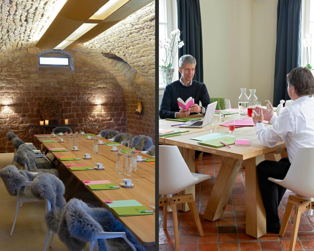 Abseits vom Alltagstrubel und ohne Unterbrechung durch andere Hotelgäste können im LÖSCH für Freund vor allem vertrauliche Themen und schwierige Aufgaben besprochen werden, die Ruhe, Abstand und ein anderes Lösungsumfeld als den klassischen Tagungsraum erfordern. Hier entstehen gute Gedanken, Ideen und neue Herangehensweisen im „Gewölbe“, im „Wohnzimmer“ mit Kamin, auf der Terrasse mit Blick auf das Kloster, am runden Tisch in der „Lounge“ oder aber im lichten „Esszimmer“. Jedes Team findet für sich den richtigen Ort für intensiven Austausch. Für die Besprechung in großer Runde findet sich die Gruppe anschließend wieder zusammen.