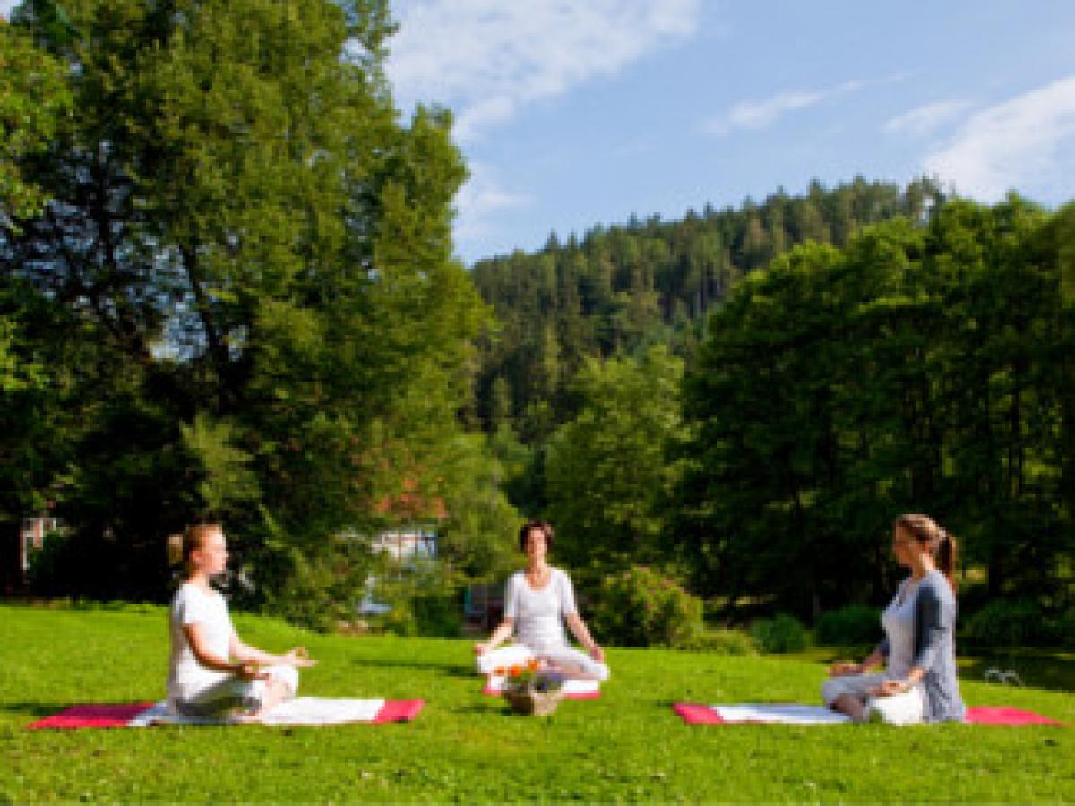 Es gibt weitere Angebote, die das Wellness-Erlebnis perfekt machen: Etwa eine Yoga-Stunde im grünen Landschaftsgarten der Bärenmühle oder eine Pilates-Lektion im Gymnastikraum.