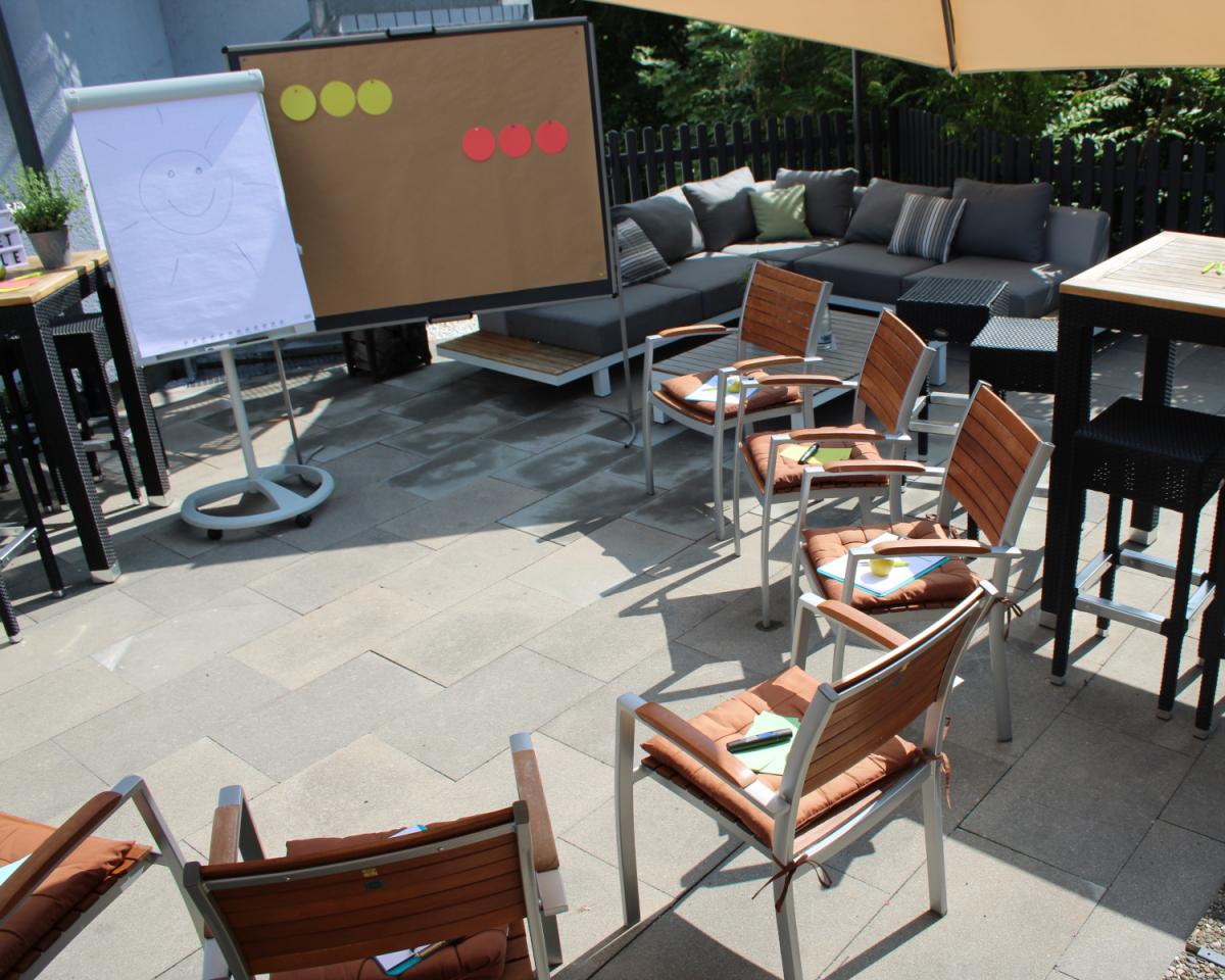 Auf Wunsch und bei schönem Wetter kann sogar ein „Outdoor Workshop Raum" bereitgestellt werden. Hier kann sich Deine Kreativität frei entfalten und ist nicht auf die 4 Wände eines Tagungsraumes begrenzt.