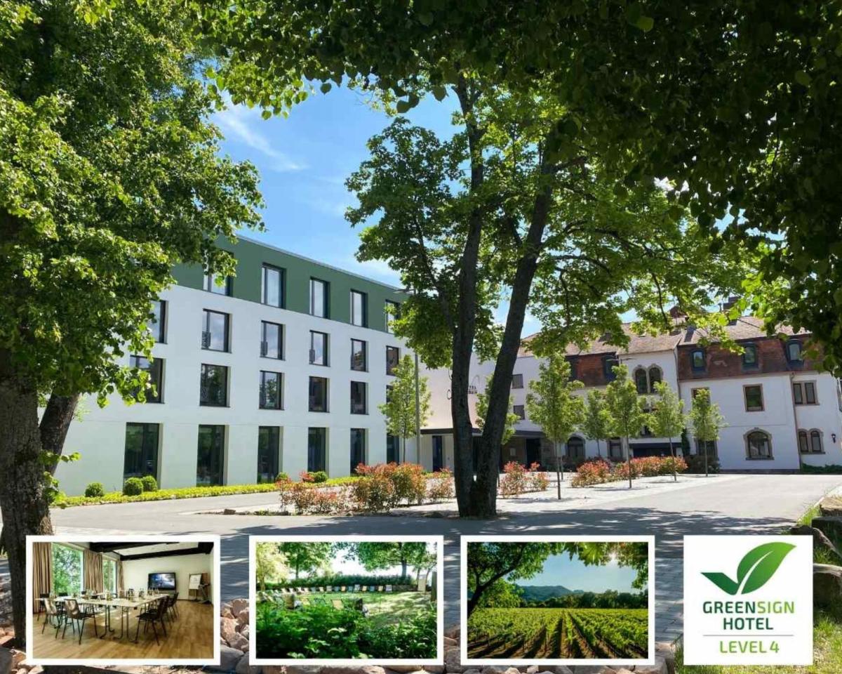 Angrenzend an den Pfälzer Wald, ragt unser Hotel hoch oben, über der Stadt Kirchheimbolanden mit Blick auf eine malerische Landschaft und die darunterliegende Rheinebene, inmitten der grünen Natur.