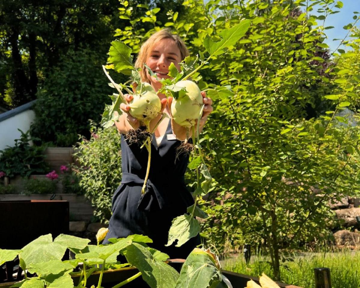 Stellen Sie sich vor, Sie halten Ihr nächstes Meeting inmitten eines großzügigen Biodiversitätengartens ab, in dem sich eine Vielzahl von Pflanzen und Tieren heimisch fühlen: Hier summen Bienen, Igel huschen durch das Unterholz, und farbenfrohe Schmetterlinge tanzen zwischen den Blumen – ein Paradies, das Lebensraum und Nahrung für zahlreiche Arten bietet. Steigende Temperaturen, erfrischender Regen und viel Liebe haben zudem grüne Powerpakete zum Leben erweckt, welche nun bereit sind Ihre Geschmacksknospen zu erobern! Unter der strahlenden Sommersonne haben wir unsere diesjährige Kohlrabi-Ernte eingefahren - bio, nachhaltig und voller Vitamine.