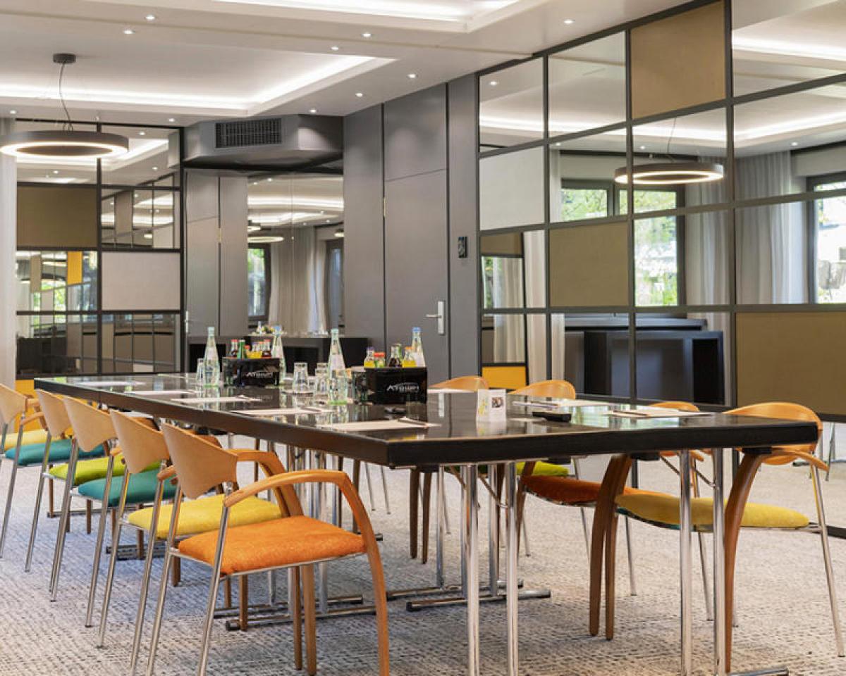 Vier weitere Tagungsräume wurden ebenfalls modernisiert und mit einem neuen Beleuchtungskonzept ausgestattet. Im Rahmen der Modernisierungsmaßnahmen wurden auch neue Zugänge zu den Außenbereichen geschaffen. Wände und Decken wurden neu gestaltet, eine automatische Fensterverdunklung eingebaut und ein Touchpanel zur Einstellung des Lichts installiert.