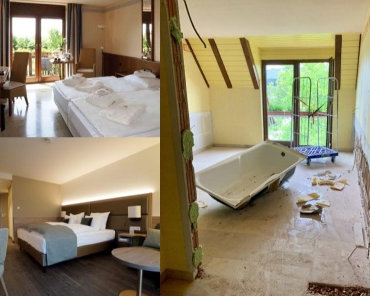 Planmäßig konnten alle Vorbereitungen zur Modernisierung der ersten Gästezimmer abgeschlossen werden. Durch den tatkräftigen Einsatz vieler Mitarbeiter aus allen Abteilungen wurden unsere Zimmer komplett ausgeräumt. Platz wurde geschaffen, damit unsere Handwerkercrew mit Motivation und Tatendrang die eigentlichen Umbauten in den entsprechenden Bereichen beginnen können - und das im laufenden Betrieb.