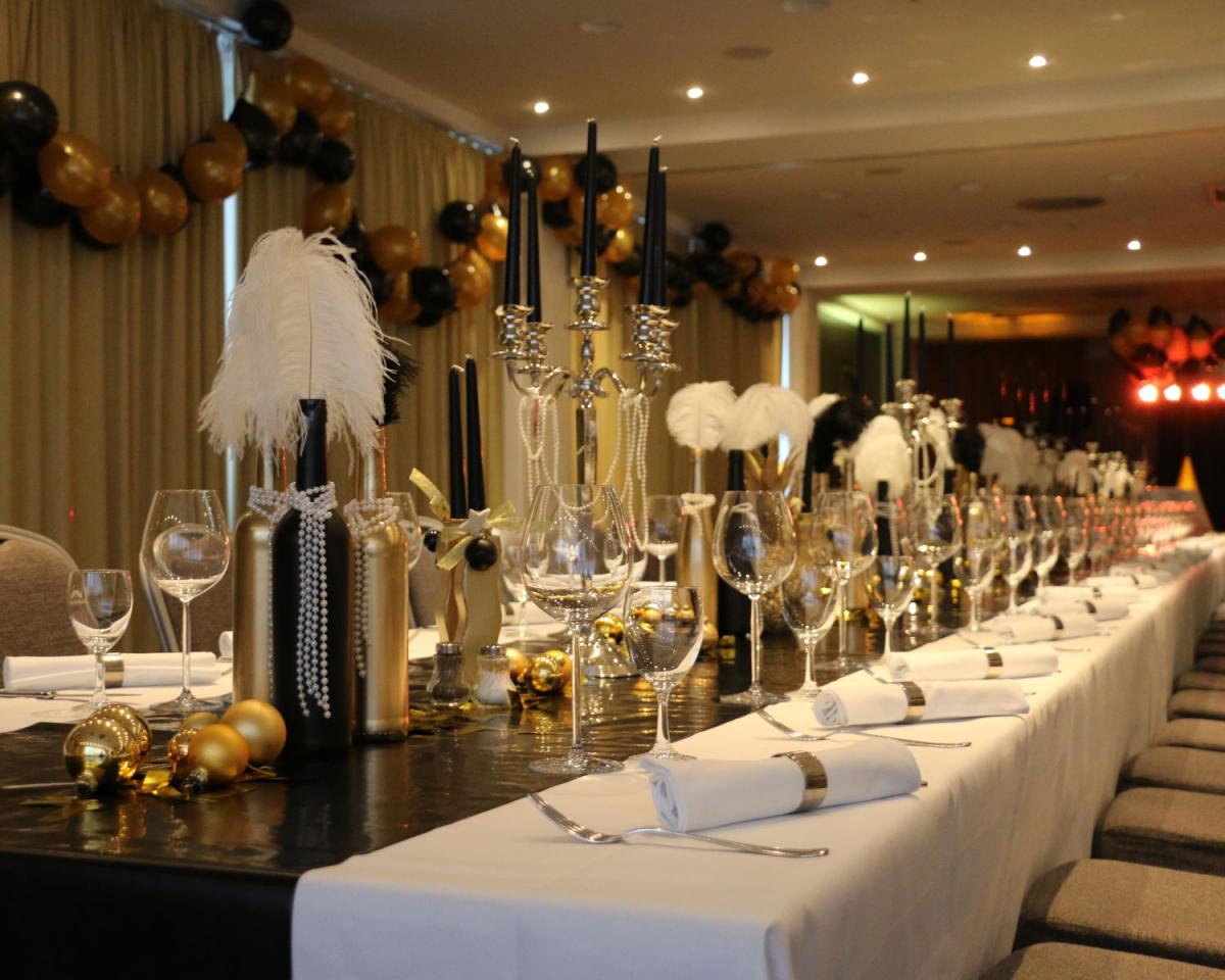Für Weihnachtsfeiern ab 30 Personen erwartet Sie ein festliches Rundum-sorglos-Paket: Der Empfang beginnt an der hoteleigenen Glühweinhütte auf der stimmungsvoll beleuchteten Terrasse – mit heißem Glühwein oder alkoholfreiem Punsch und einer gemütlichen Feuerschale, die sofort weihnachtliche Atmosphäre schafft. Im Anschluss genießen Sie mit Ihren Gästen ein liebevoll zusammengestelltes, weihnachtliches Buffet, begleitet von einem dreistündigen Getränkepackage mit Softdrinks, Bier, Hauswein und Heißgetränken. Der festlich dekorierte Raum mit Christbaum schafft den perfekten Rahmen für entspannte Gespräche oder ausgelassene Stimmung – auf Wunsch auch mit Tanzfläche und musikalischer Begleitung durch DJ oder Live-Band. Dieses Paket ist für nur 69 Euro pro Person buchbar.