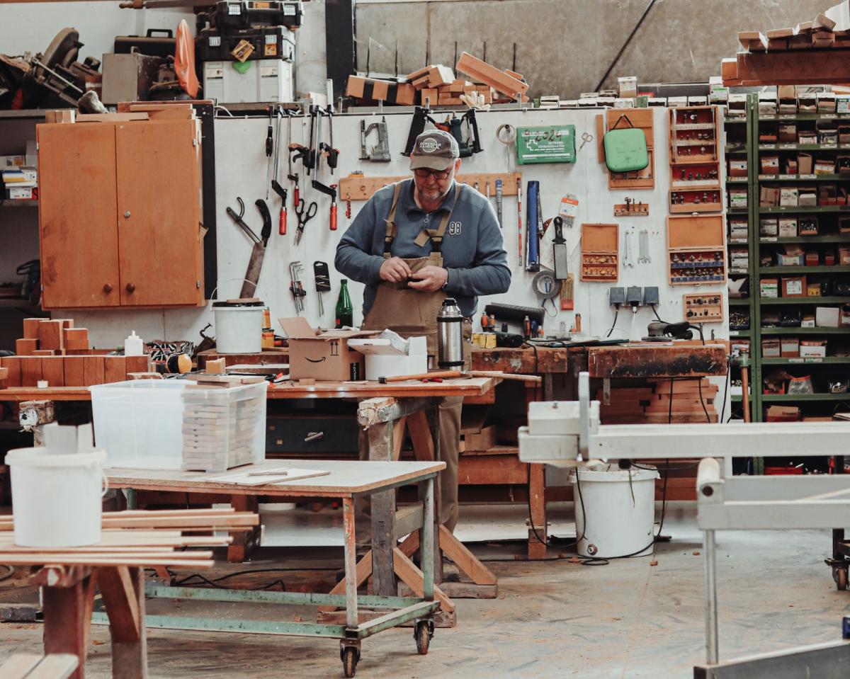 Wer kann schon von sich behaupten, dass (fast) alle Möbel unseres Hotels von der Produktionsstätte zum Einsatzort nur einen Weg von 300 Metern zurückgelegt haben? Wir! Unsere hauseigene Schreinerei befindet sich auf unserem Gutshof und wird von unserem Schreiner Stefan betrieben. Wann immer wir einen hölzernen Wunsch haben, erfüllt er ihn.