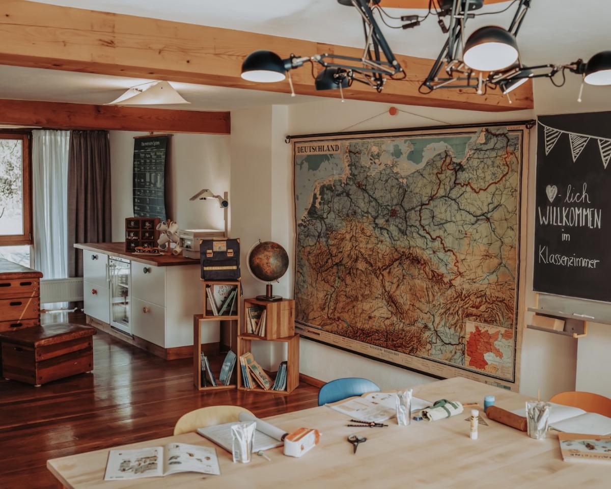 Was könnte für eine Klausur besonderer sein als ein Ausflug zurück in die Schulzeit? Natürlich mit einer originalen Kreidetafel, einer großen Landkarte und ganz viel Equipment, das dazu führt, dass unser Klassenzimmer seinem Namen gerecht wird und die unverwechselbare Atmosphäre in Erinnerung bleibt.