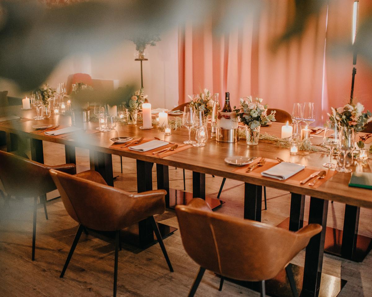 Ab 14 Personen wird es noch besonderer: Wir reservieren für euch unseren Raum HinGAABe. Hier könnt ihr aus festlichen Menüs wählen und einen unvergesslichen Abend verbringen. Vorab laden wir euch zu einem stimmungsvollen Empfang mit Sekt oder Glühwein in unsere Hotelbar "Wohnzimmer" ein.